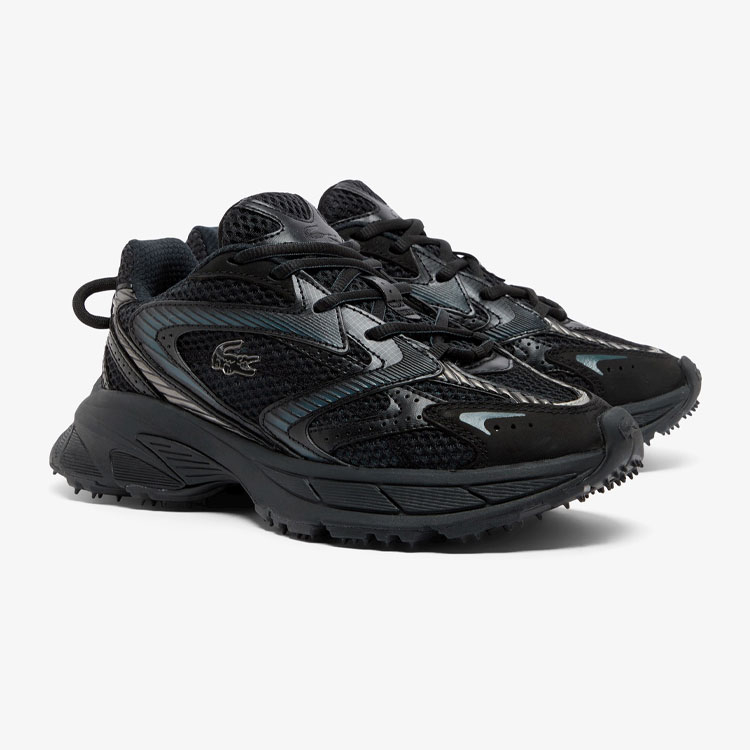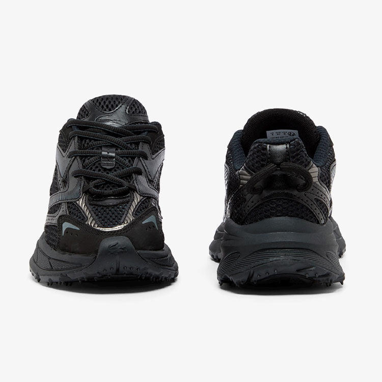 - 目の大きいメッシュパネルのオーバーレイが印象的なペアは、緻密にデザインされたシンセティックレザーとの切り替えパターンが魅力。