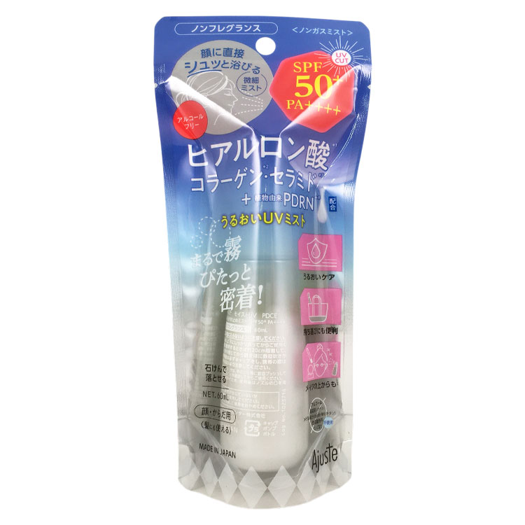 アジャステ うるおいUVミスト ヒアルロン酸コラーゲン・セラミド?PDRN 無香料 60ml