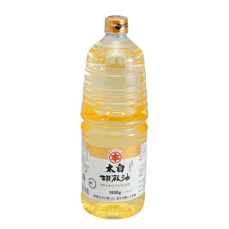 通常のごま油は厳選したごまを煎ることによって、色や香りが生まれます。太白胡麻油はごまを煎らずに生のまま搾っているため、ごま油特有の色と香りがありません。