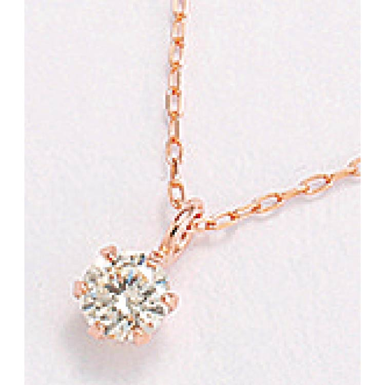 - 肌なじみがよいK10ピンクゴールドの一粒ダイヤモンドネックレスです