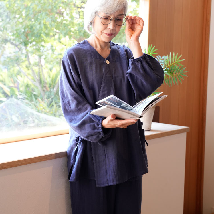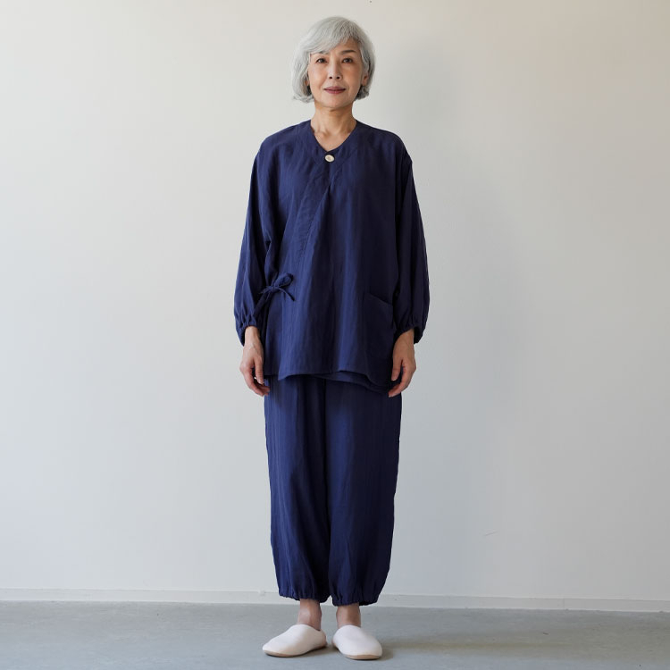 [アーリーサマーセール]〔着る保湿クリーム〕婦人機能性ルームウェア(作務衣風) ネイビー MP