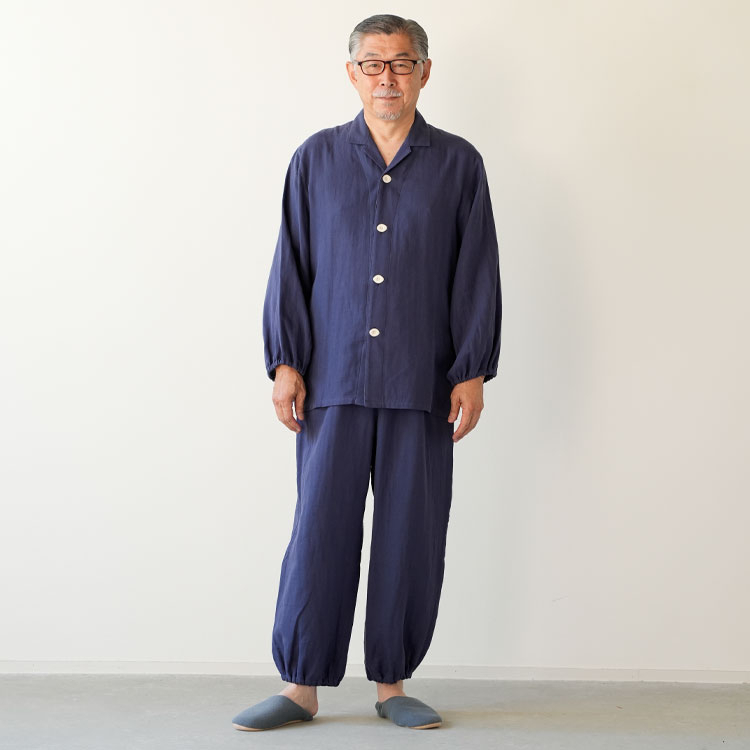 [アーリーサマーセール]〔着る保湿クリーム〕紳士機能性ルームウェア(開衿) ネイビー M