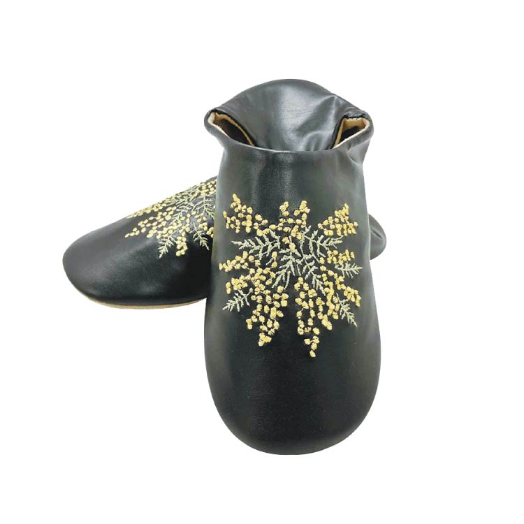 [アーリーサマーセール]花刺繍バブーシュ ブラック