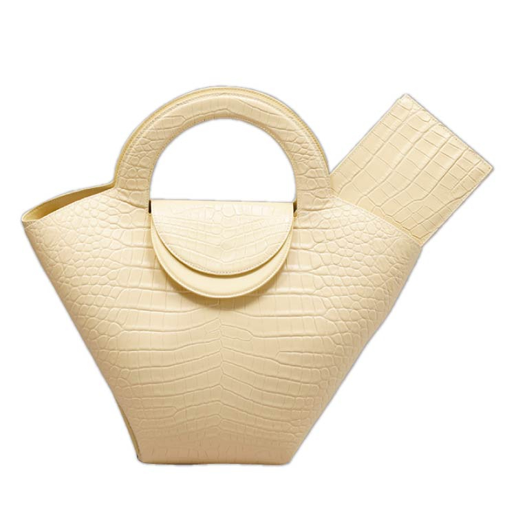 - 扇のような形が特徴のトートバッグです。