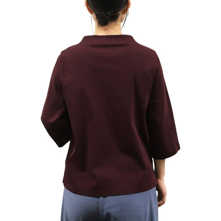 [アーリーサマーセール]婦人綿100%ボトルネックTシャツ 65ワイン M~L