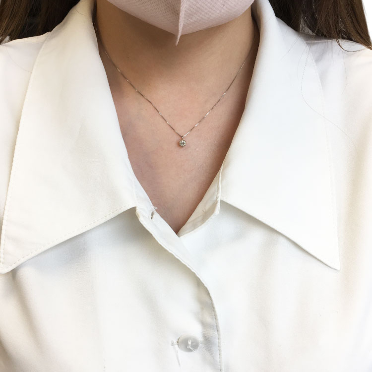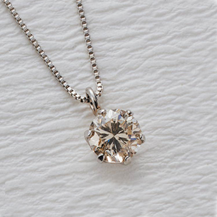 - 定番の6本爪 ブリリアンカット0.30ctダイヤモンドペンダント。若干色甘ですが、艶あり