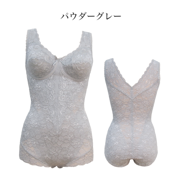 【yauco】総レース多機能 ボディスーツ パウダーグレー L