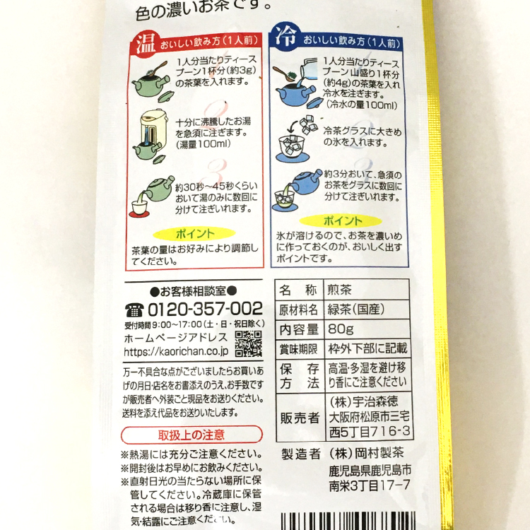 - 南国の温暖な気候で育った鹿児島県知覧産の茶葉を、深蒸しに仕上げました。深蒸し独特のふくよかで濃厚、水色の濃いお茶です。