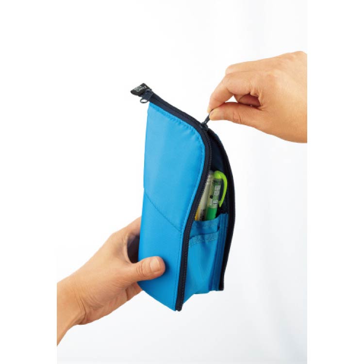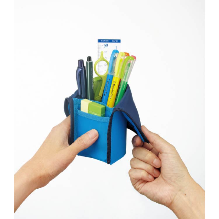 ファスナーを開けて上半分を折り返せば、ペンスタンドに早変わり