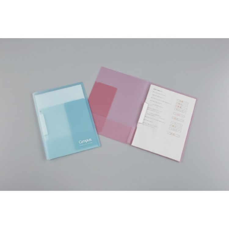 プリントを分類できる2つのポケットと、覚えたいプリントをとじておけるクリップ付