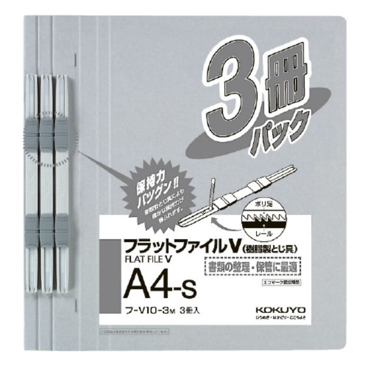 [コクヨ] フラットファイルV樹脂製とじ具 15mm 3冊入り グレー