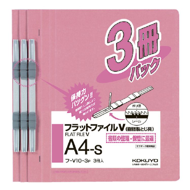 [コクヨ] フラットファイルV樹脂製とじ具 15mm 3冊入り ピンク