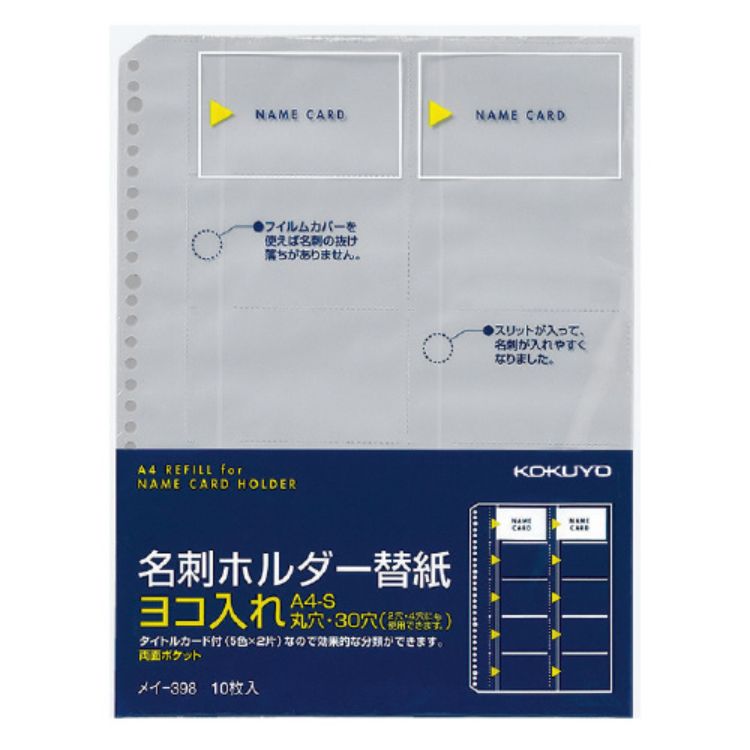 [コクヨ] 名刺ホルダー替紙A4・30穴(2・4穴対応)用10枚200名収容