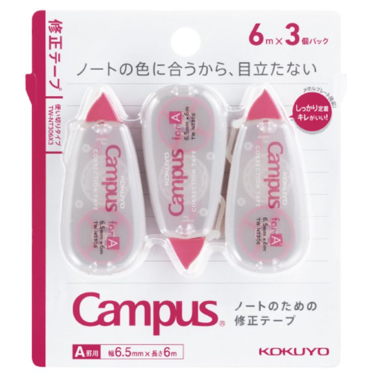 [コクヨ]キャンパス修正テープ使い切りA罫用(テープ幅6.5mm)6m3個パック
