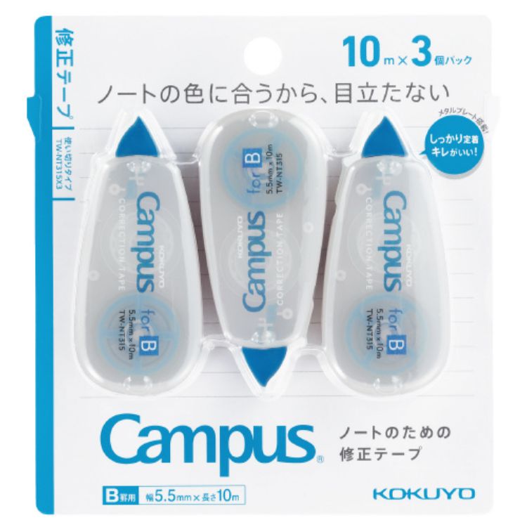 [コクヨ]キャンパス修正テープ使い切りB罫用(テープ幅5.5mm)10m3個パック