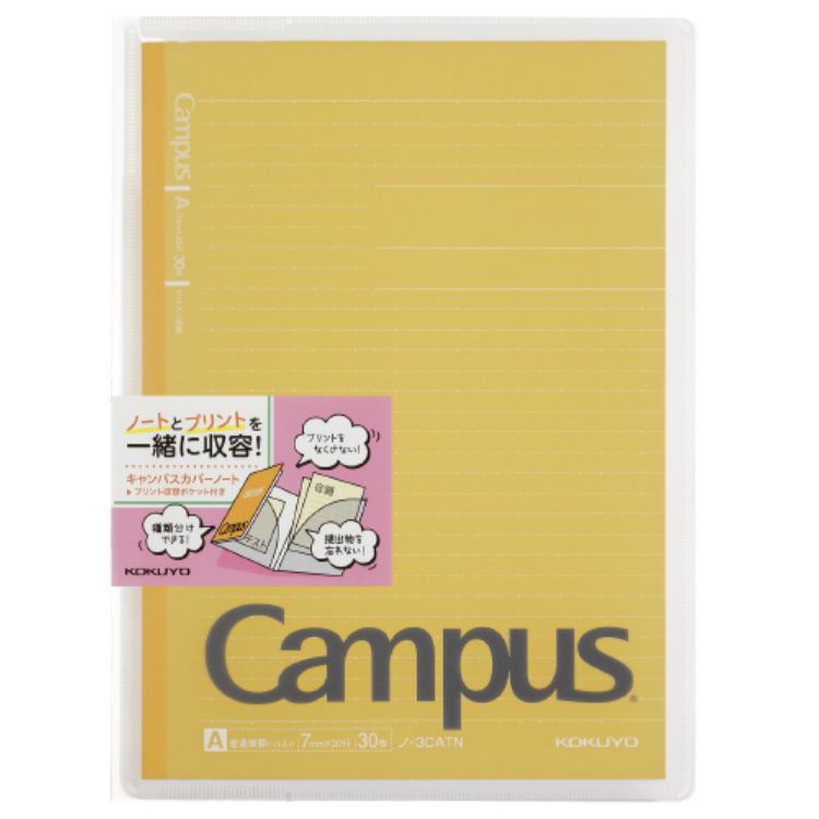 [コクヨ]キャンパスカバーノート<プリント収容ポケット付き>黄