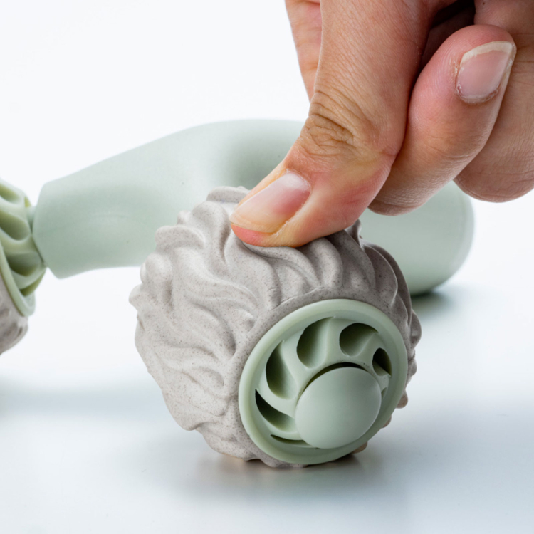 - まるで手のひらのようなむぎゅっと感。吸いつくようなもちもち素材のローラー。