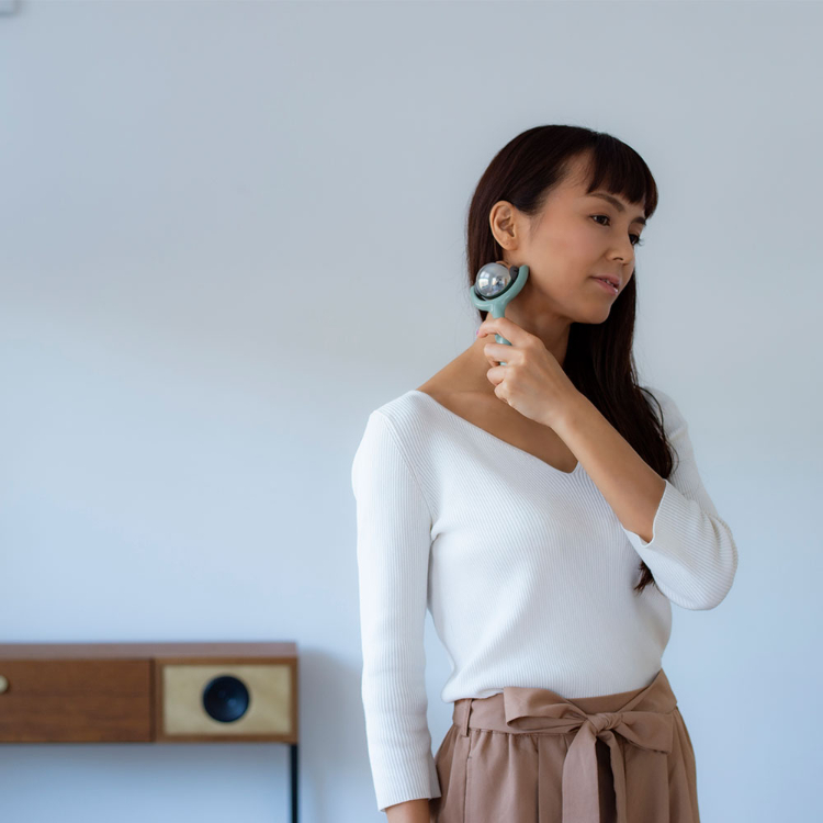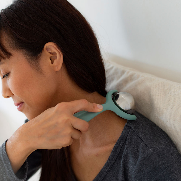 - 持ち手つきで転がしやすい、電気を使わない、冷温機能2wayの使い方。保温を手助けするジェル内蔵ステンレス製ボールのスティック付きボールローラー。
